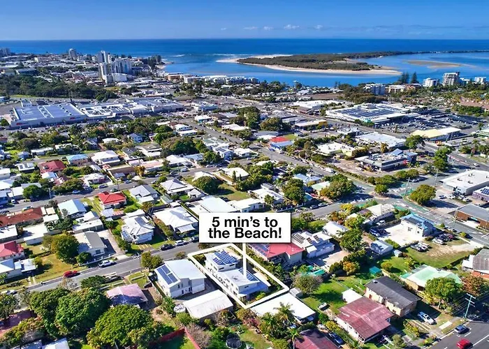 庭園の景色を見渡せるテラスを提供する寝室2室のFully Airconditioned, Pet Friendly, 5Mins To Beach カラウンドラ 別荘は、Caloundra RSL Military Displayから歩いて5分離れた場所にあります。 Caloundra Shopping Centre少し離れた位置し、この浴室2室の別荘はWiFiと無料の専用駐車場を提供しています。